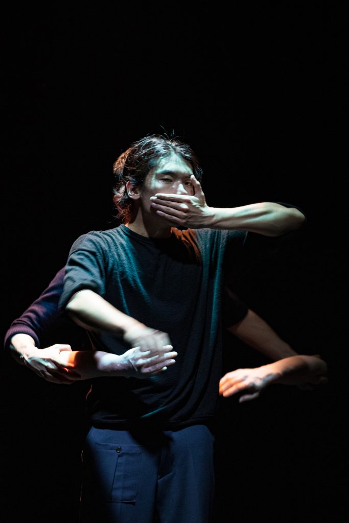 – 이번에 모다페에서 선보이는 작품 [혼재]는 뒤죽박죽한 현 사회 안에서의 구조, 소멸되고 사라지고 증발되는 인간의 반복되는 무의미한일들, 소통의 부재 속에서 자신의 정체성을 찾아가고 싶은 많은 질문들을 내포하고 있다. 남성 무용수 2인이 때론 1인처럼 보이고 때론 2인으로 분리되기도 하며, 독립적인 개체들과 현 사회에 있는 사람들 속에서 나를 발견하고 알아가는 과정으로 풀어가고 있다. 두 무용수가 주고 받는 관계와 에너지, 몸 내부 안에서의 리듬, 즉 ‘소통’을 표현한다.